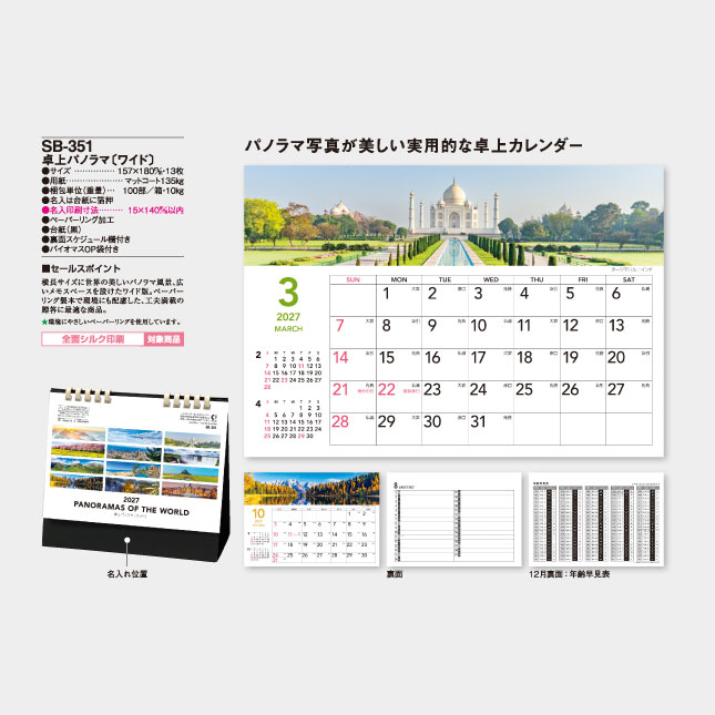 パノラマ写真が美しい実用的な卓上カレンダー