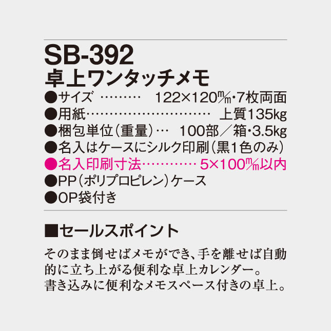 卓上 ワンタッチメモ SB-392 の特徴