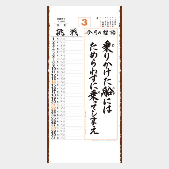使いやすいメモスペースも付いたカレンダーの定番です。