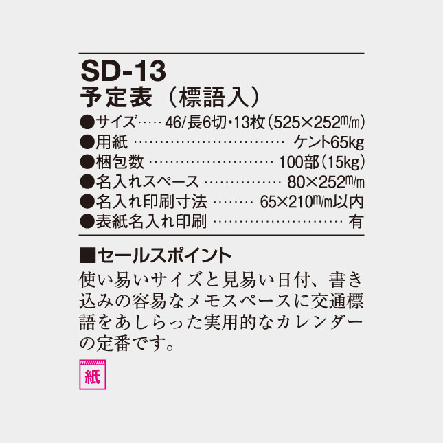 予定表(標語入) SD-13 の特徴