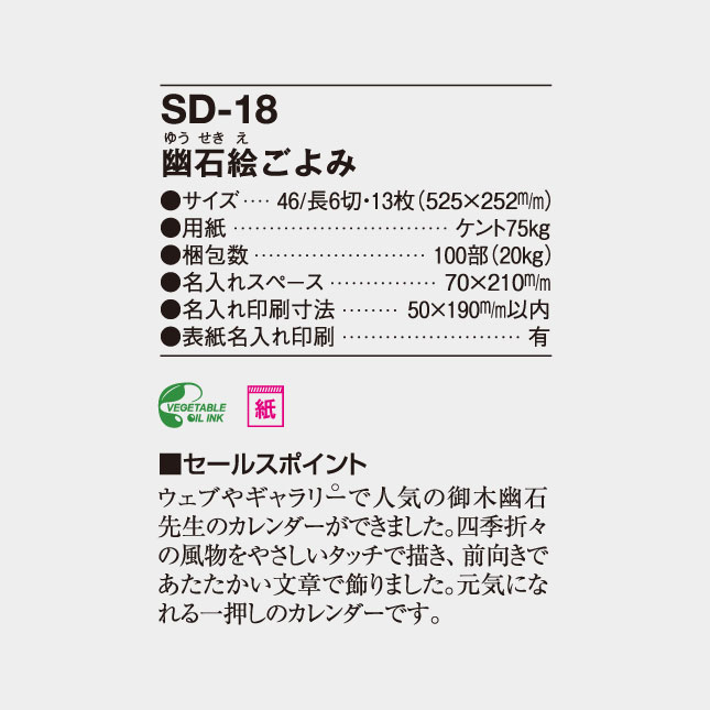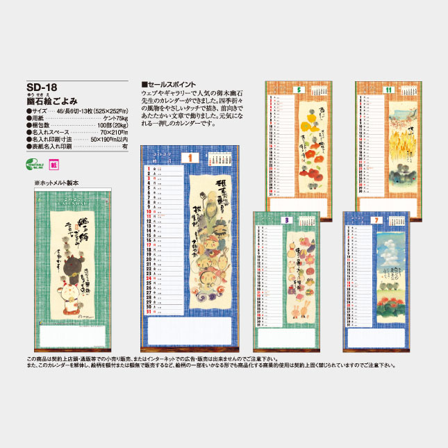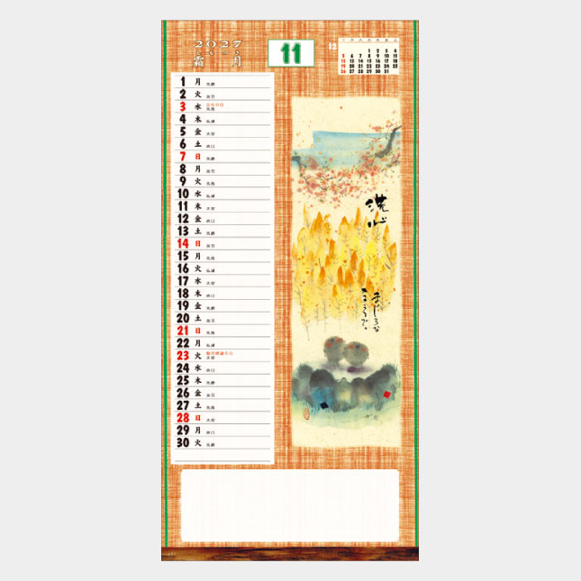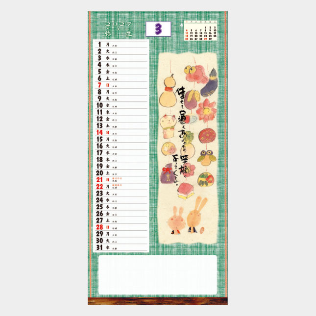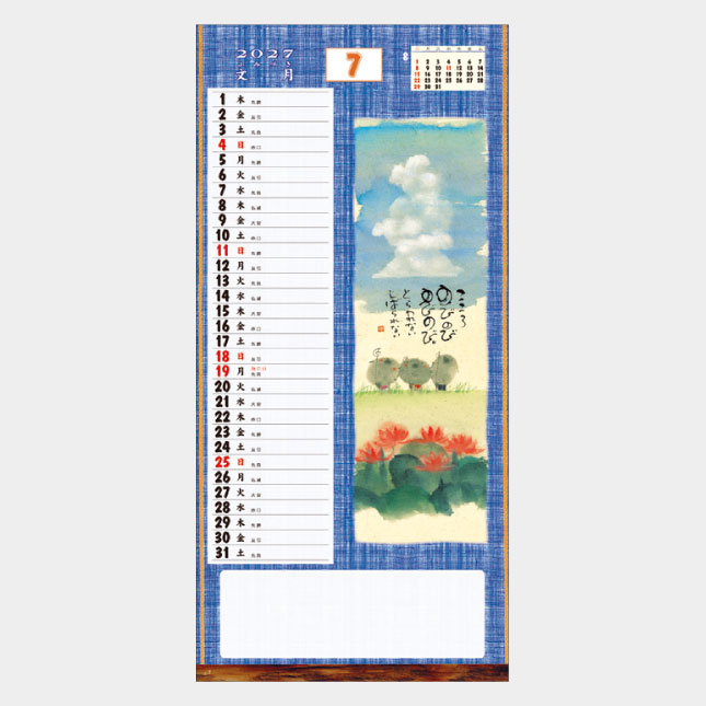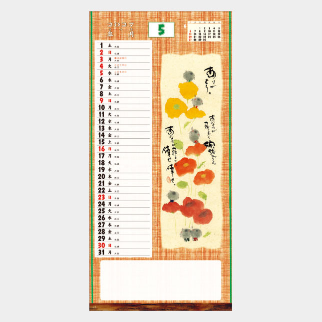 四季折々の風物をやさしいタッチで描き、前向きであたたかい文章で飾りました。元気になれる一押しのカレンダーです。
