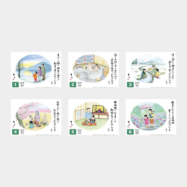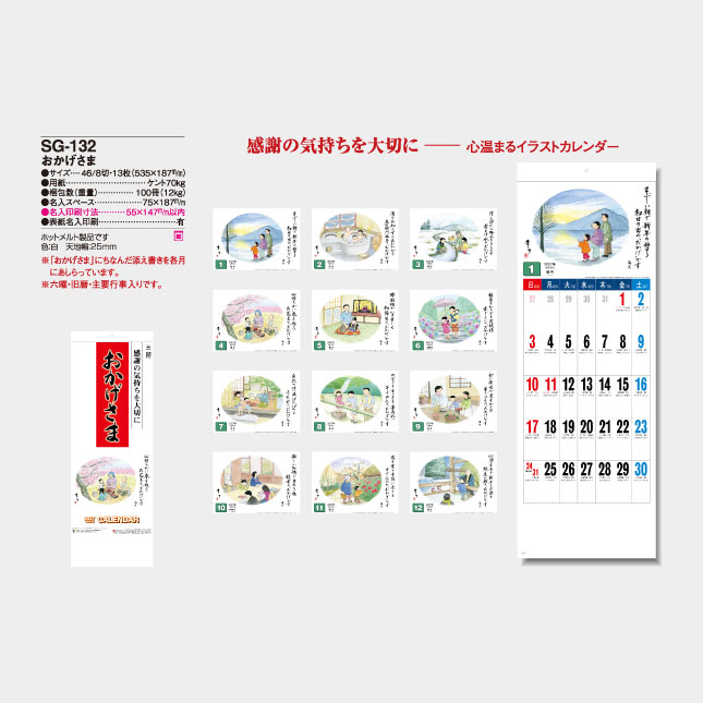 「おかげさま」にちなんだ添え書きを各月にあしらっています。