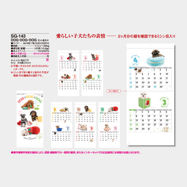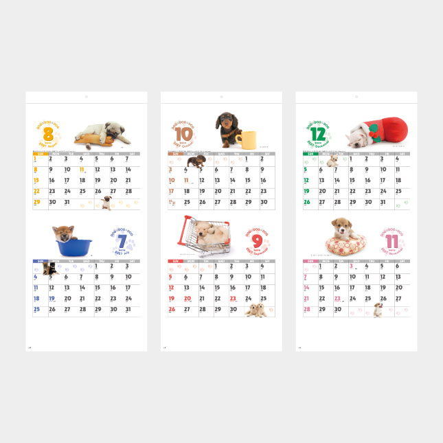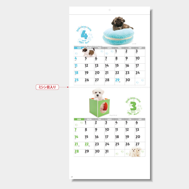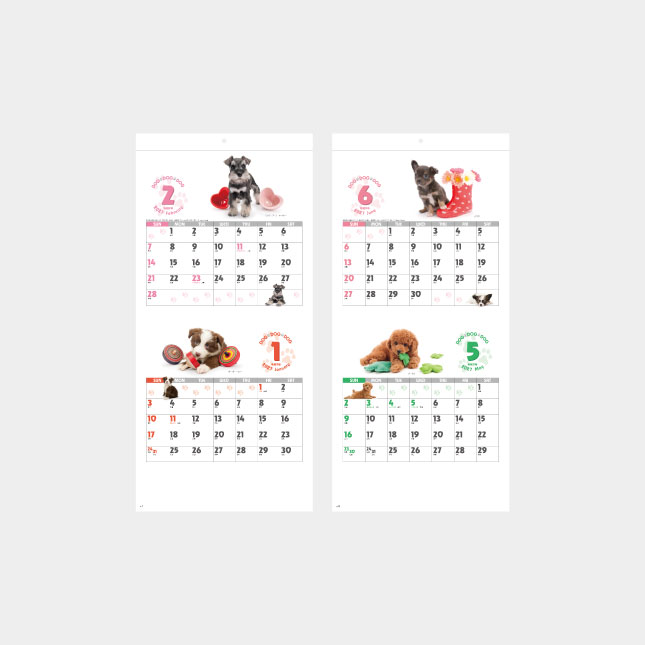 【人気商品】愛らしい子犬たちの表情 – 2ヶ月分の暦を確認できるミシン目入り