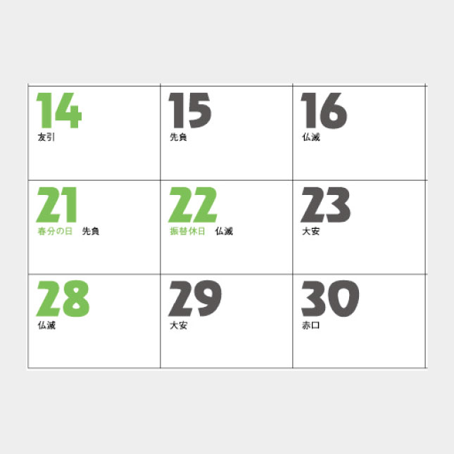 ミシン目で切り離すと後月の予定が確認できる機能的な設計です。