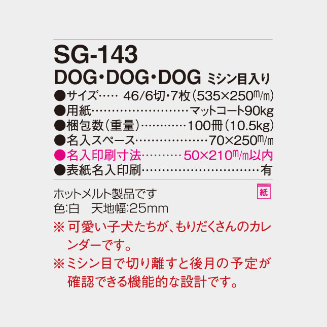 DOG・DOG・DOG ミシン目入り SG-143 の特徴