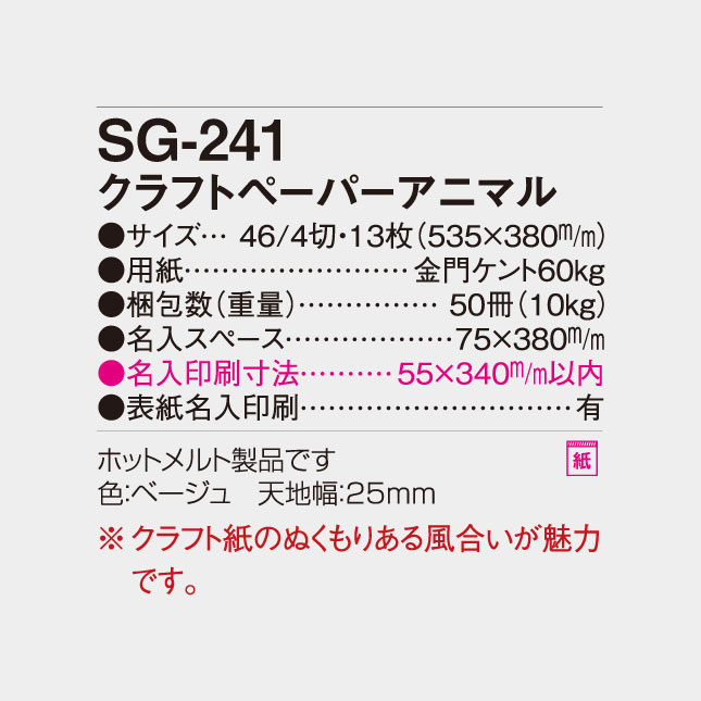 クラフトペーパーアニマル SG-241 の特徴