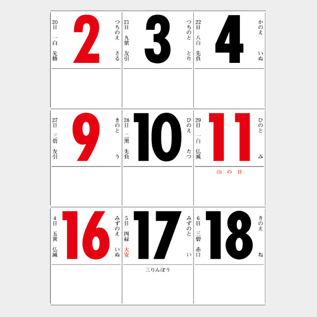 見やすい3色文字-機能性を重視し、多彩な暦の情報を掲載