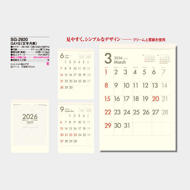 DAYS(文字月表) SG-2920 の特徴