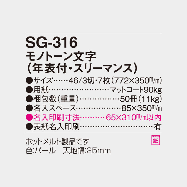 モノトーン文字(年表付・スリーマンス) SG-316 の特徴