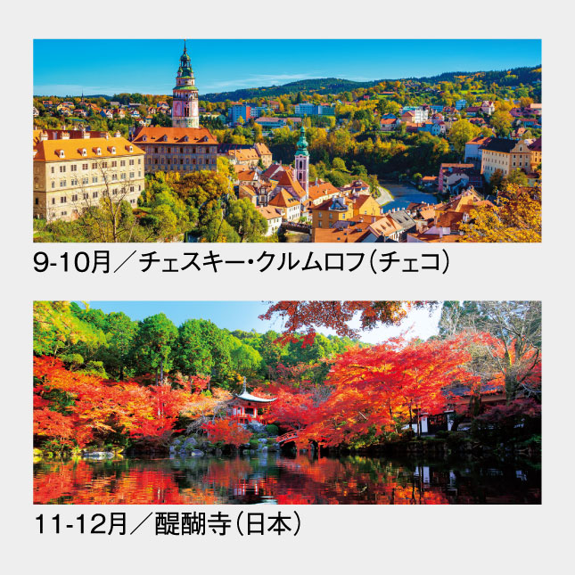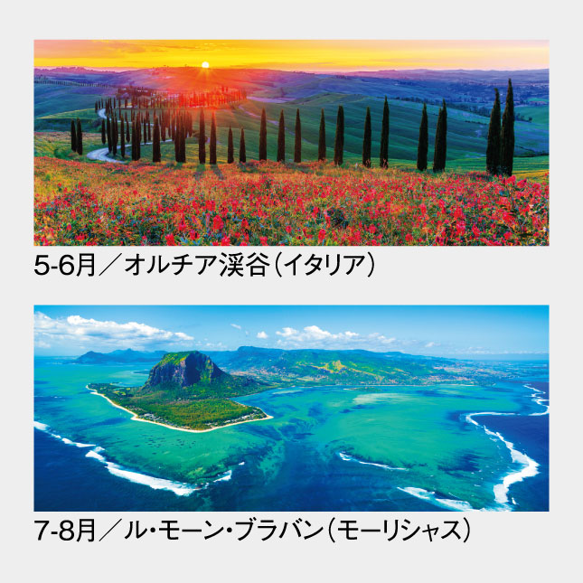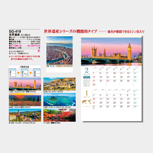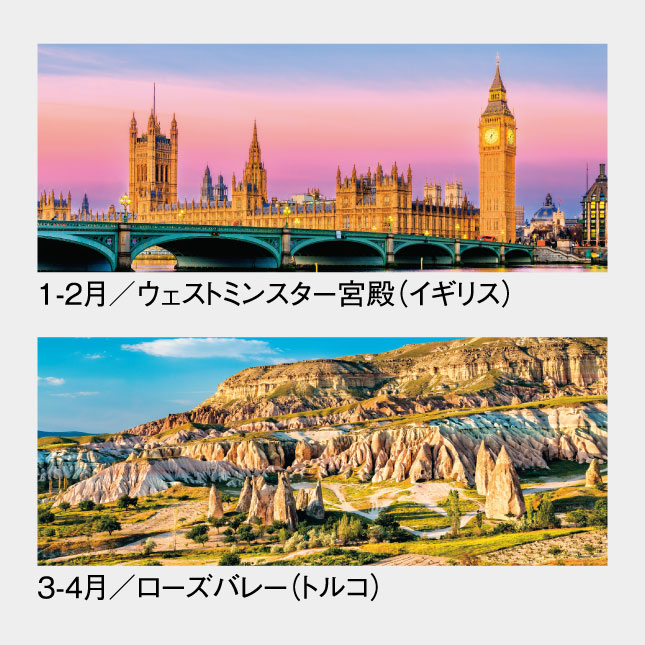 人気の世界遺産シリーズのA2版、2ヶ月表示カレンダーです。