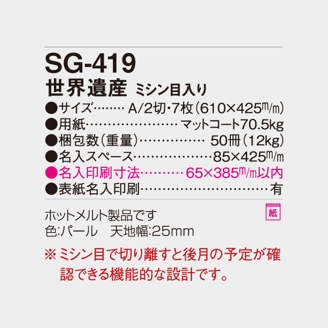 世界遺産 ミシン目入り SG-419 の特徴