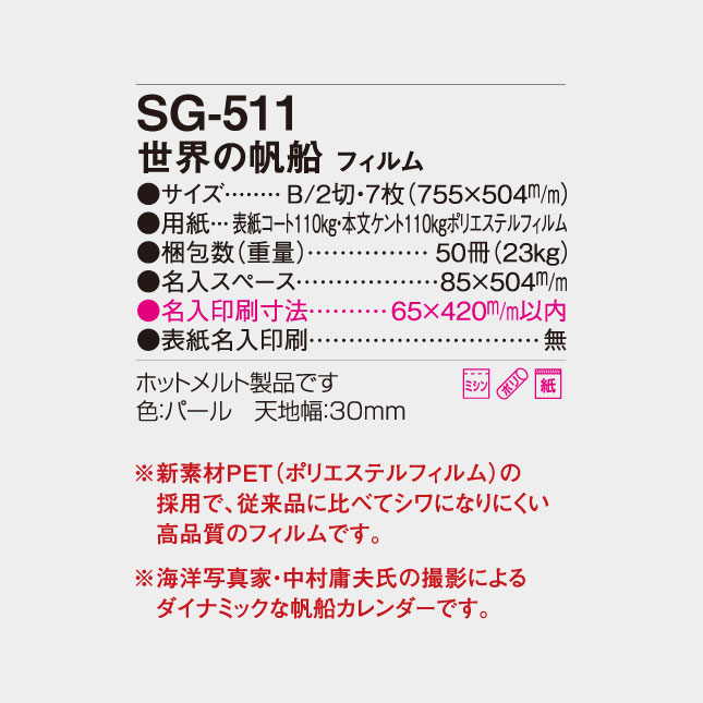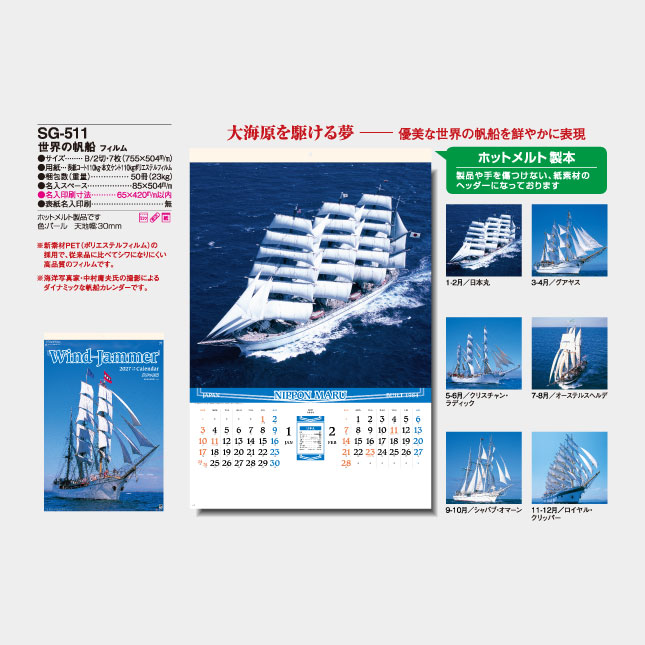 ※このカレンダーは『SB-294 世界の帆船 フィルム』と同じ商品です。