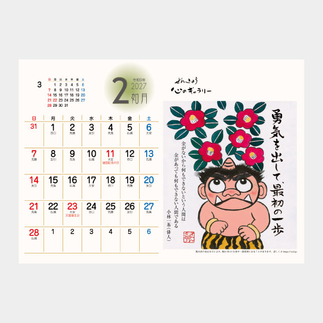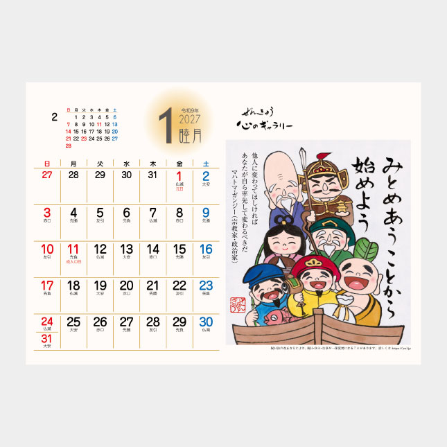 素朴で温かみのある、にわ ぜんきゅう氏の絵と言葉がカレンダーを彩ります。