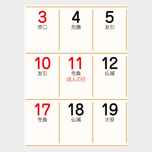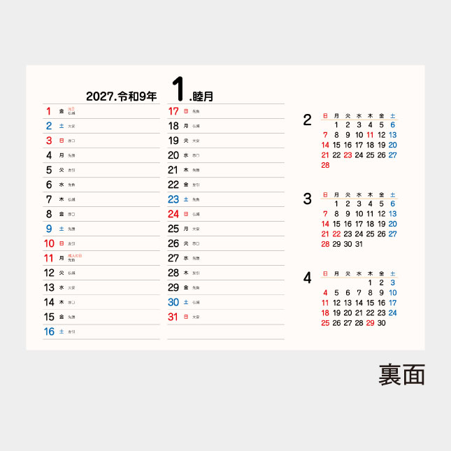 後月のサブカレンダーと六曜を掲載した機能的な仕様です。