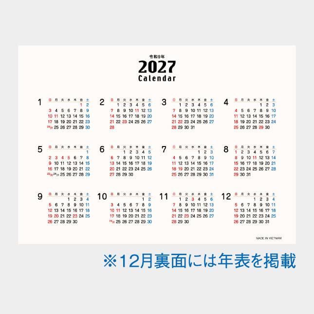 ※このカレンダー本体はベトナム工場生産です。名入れ印刷は国内で印刷します。