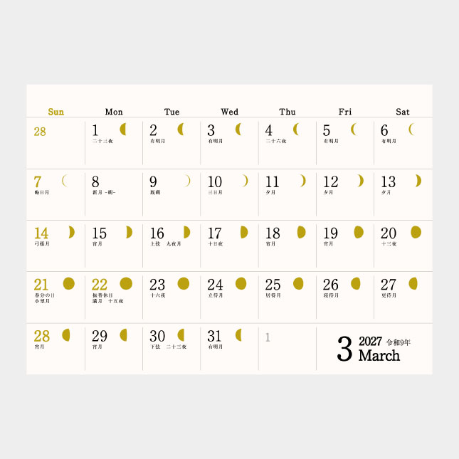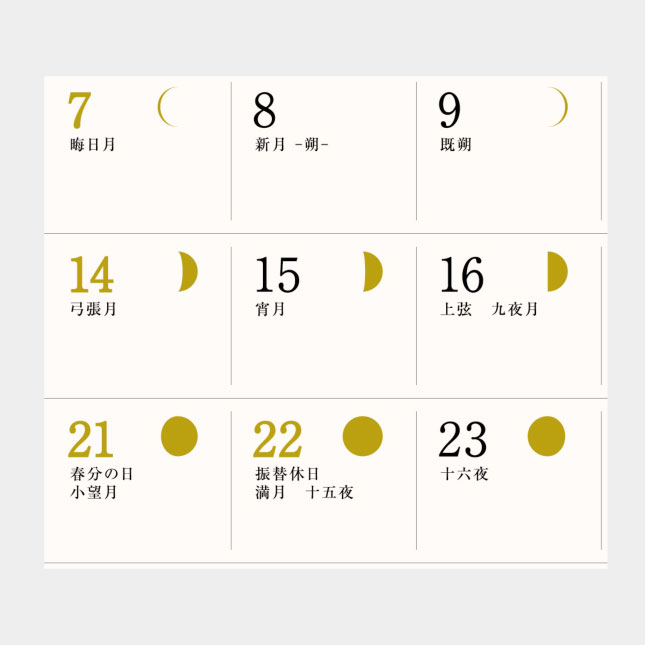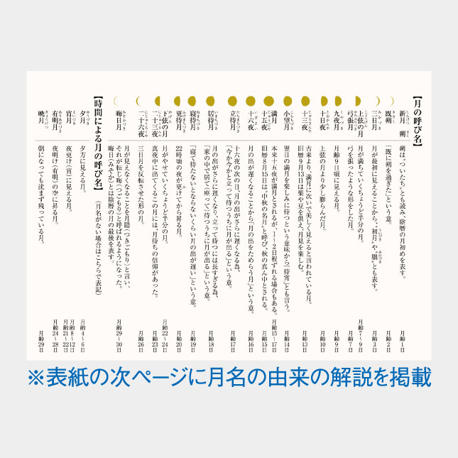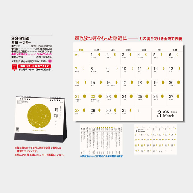 毎日満ち欠けする月の輝きを金箔で表現した豪華なデザインです。