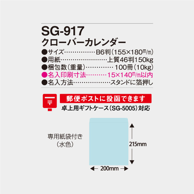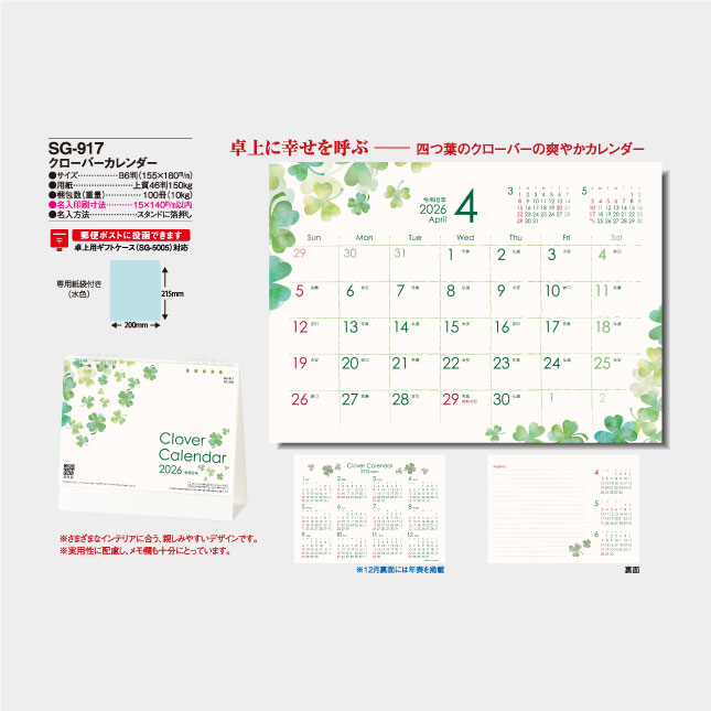 SG-917卓上クローバーカレンダーだけの特別色がご利用いただけます。