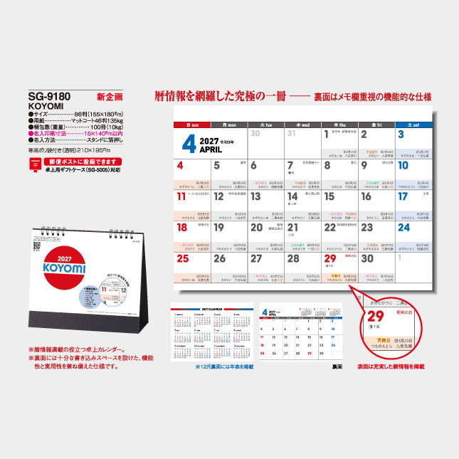| 種別 | 卓上カレンダー |