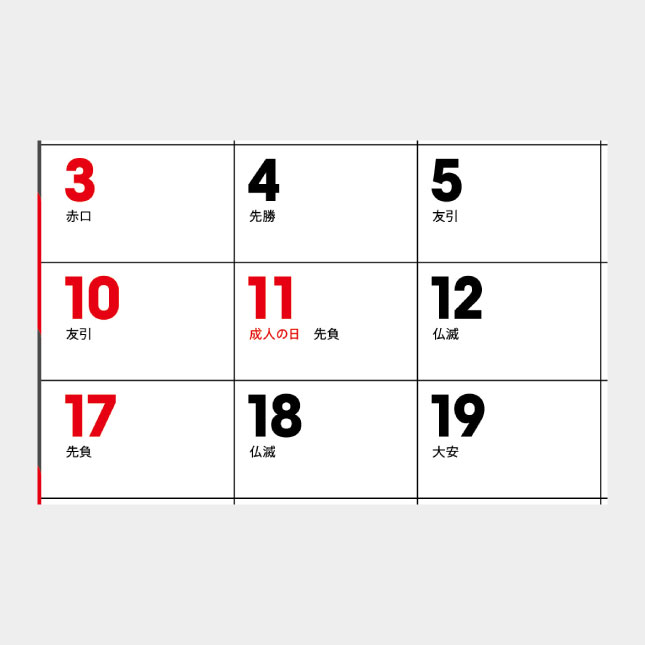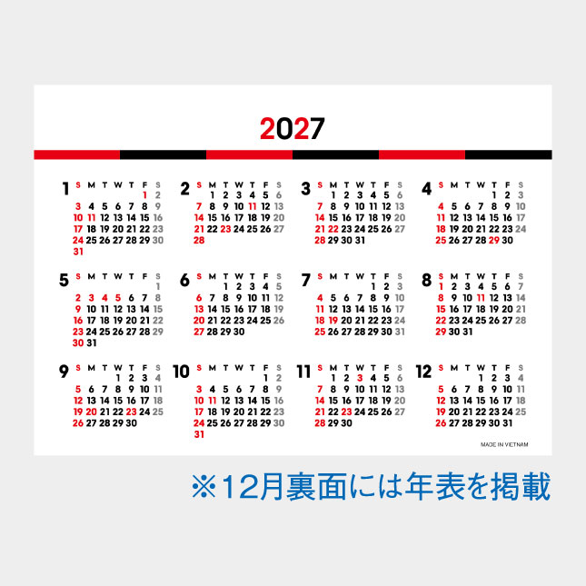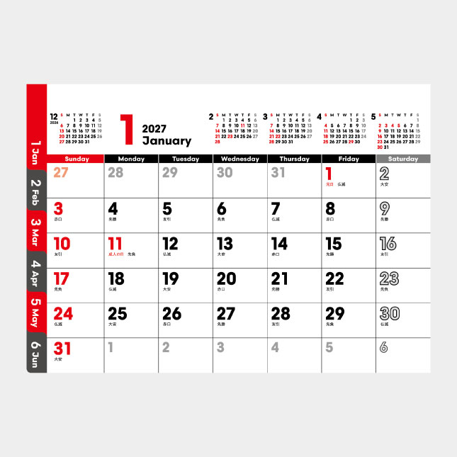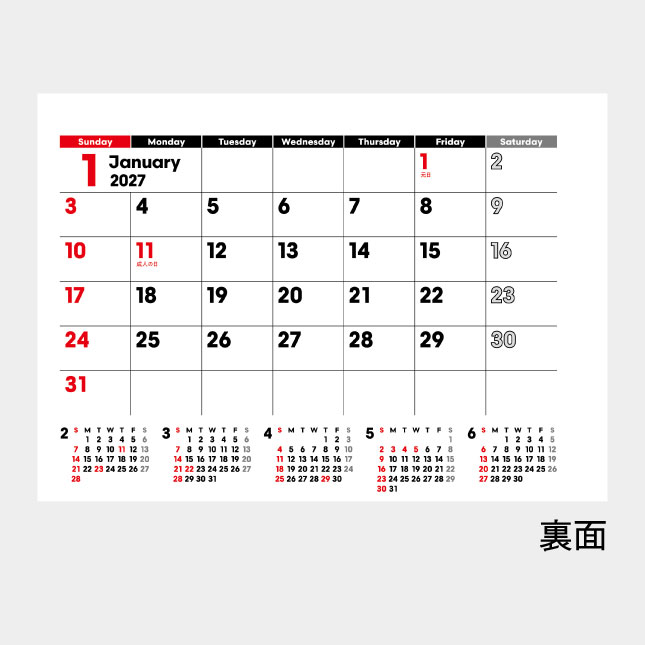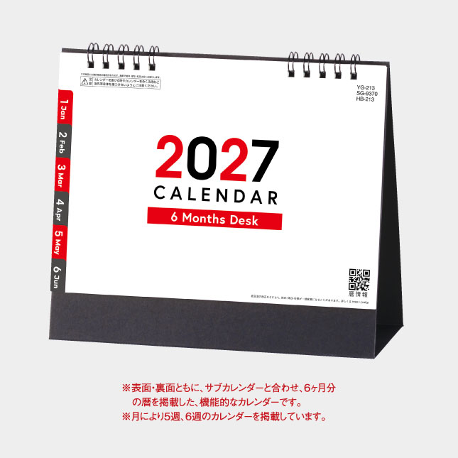 表面・裏面ともに、サブカレンダーと合わせ、6か月分の歴を掲載した、機能的なカレンダーです。