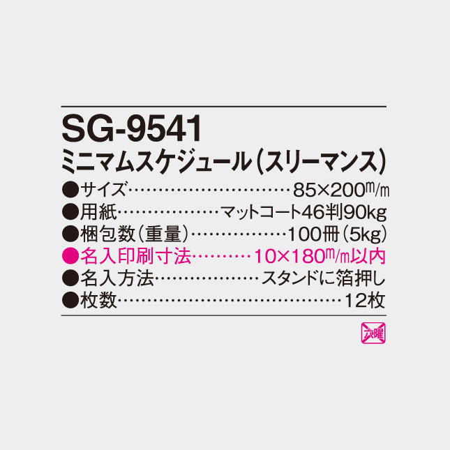 卓上 ミニマムスケジュール(スリーマンス) SG-9541 の特徴