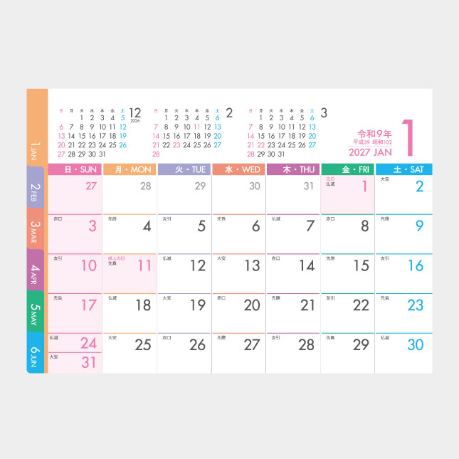 SG-315 パステルカラースケジュール3ヶ月(46/3切・775×350mm)