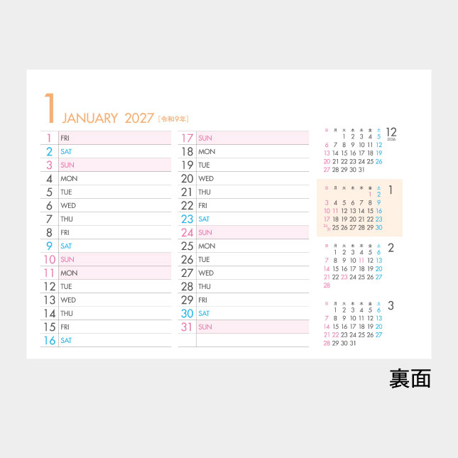 裏面には使い勝手の良いスケジュール表を掲載しています。