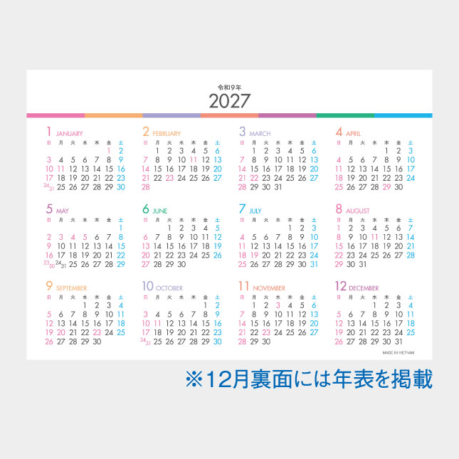※このカレンダー本体はベトナム工場生産です。名入れ印刷は国内で印刷します。
