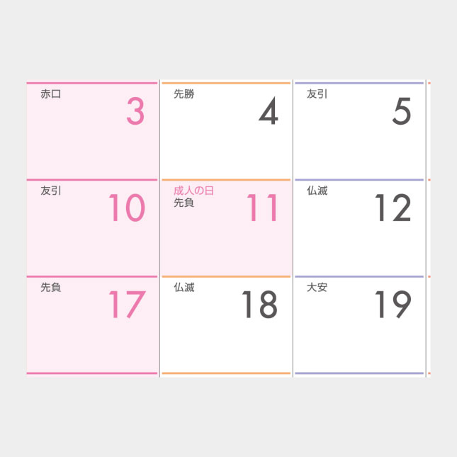 前月1ヶ月、後月2ヶ月分のカレンダーを掲載。