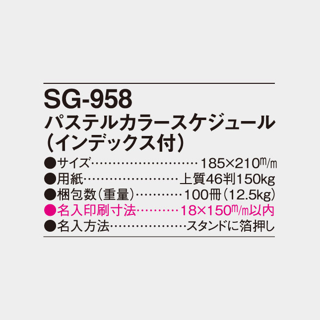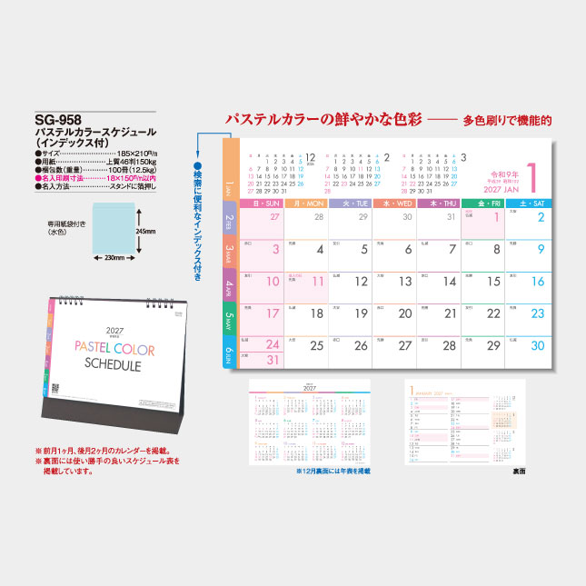 SG-958 卓上 パステルカラースケジュール(インデックス付)(190×210mm)