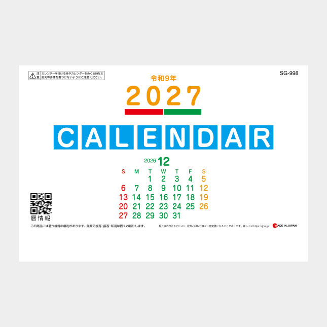 SG-9980 のカレンダー基本情報