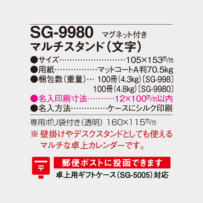 | 種別 | 卓上カレンダー |