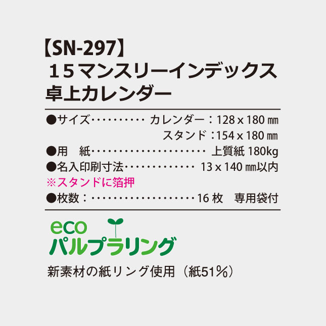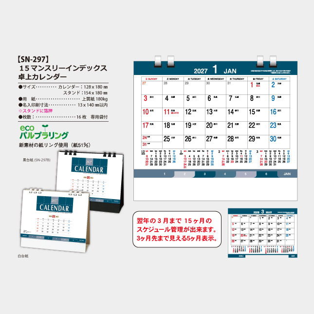 卓上 15マンスリーインデックス カレンダー SN-297A の特徴