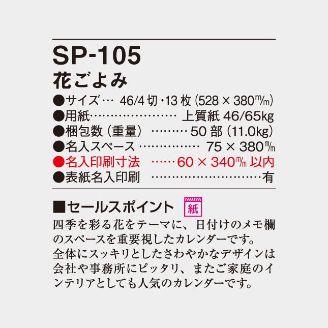 花ごよみ SP-105 の特徴