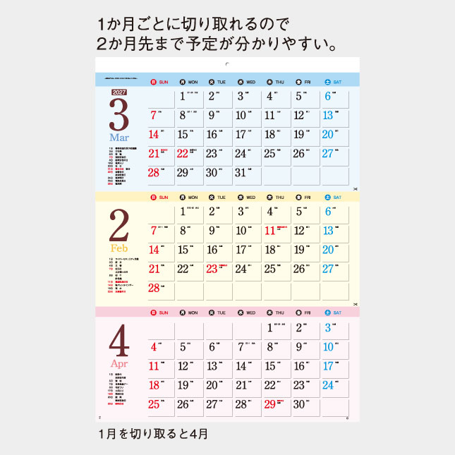 色分けもしてあるので、はっきり区別ができ月を間違うことがありません。