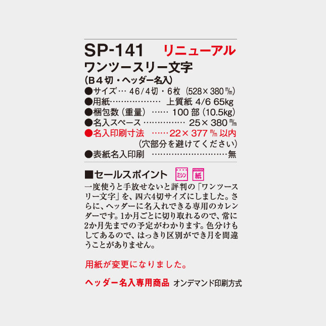 ワンツースリー文字(ヘッダー名入れ) SP-141 の特徴