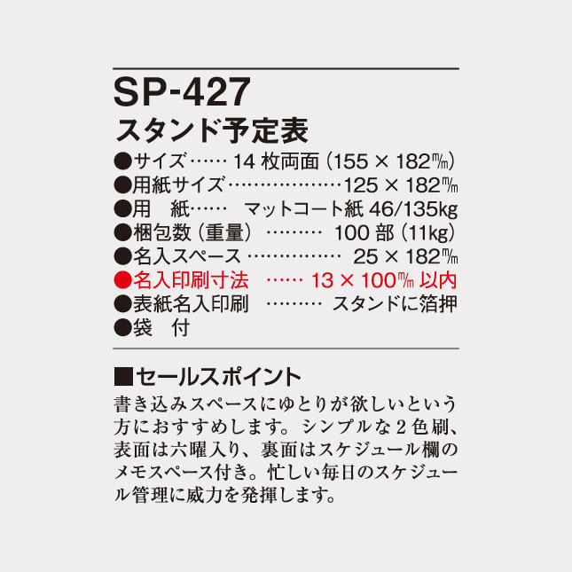 SP-427 の名入れ詳細