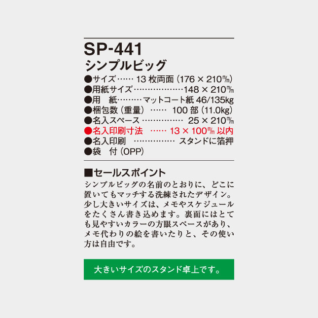 卓上 シンプルビッグ SP-441 の特徴