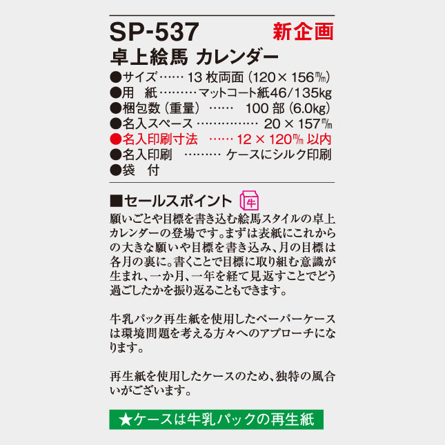 卓上 絵馬カレンダー SP-537 の特徴