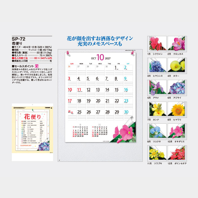四季折々の花をしゃれたデザインで仕上げたカレンダーです。