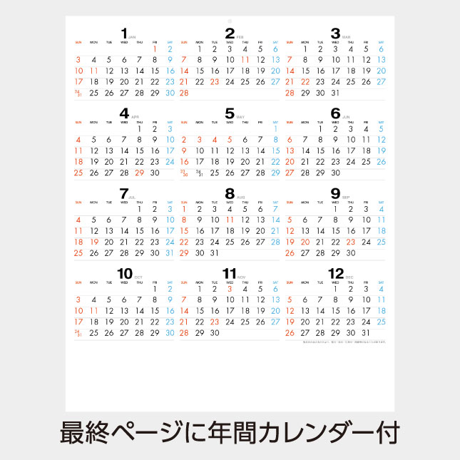 ※このカレンダーは最終ページのみ1枚に名入れ印刷します