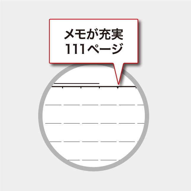 ●111ページのたっぷりメモだから、ノートのように使えます。雑誌や新聞の切り抜きを貼り付けてもOK!ふと思いついたアイデアやお客様の意見の記録など、スペースを気にせずバンバン書き込めるから、成功のヒントも逃しません。あなたに合わせて自由にお使いいただけます。