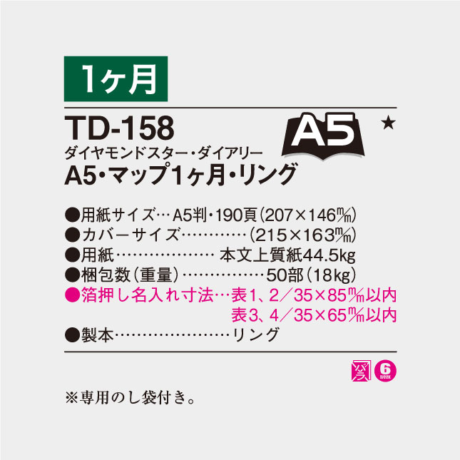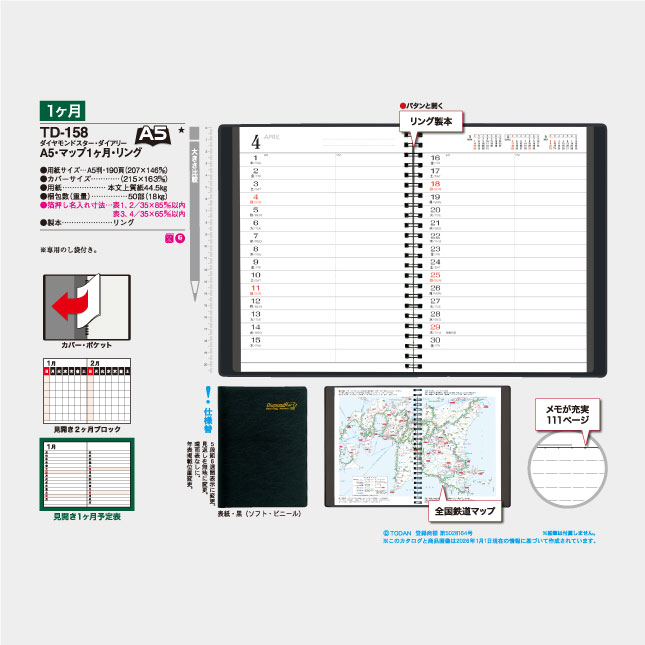 A5ダイアリー・マップ1ヶ月・リング(白)TD-158 の特徴