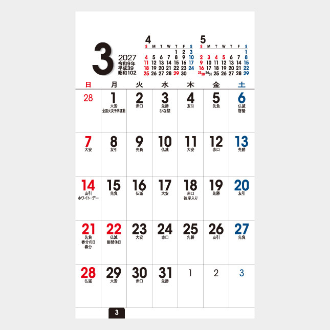 | 商品名 | 卓上 ポケットカレンダー・ベーシック(メモ付) |