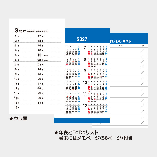 | 用紙 | 表紙厚口/360kg・本文マットコート紙/110kg・メモ クリーム上質紙/72.5kg |