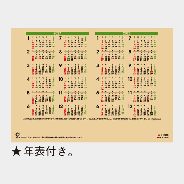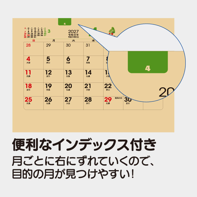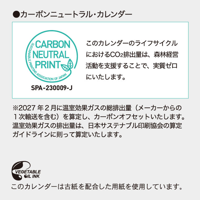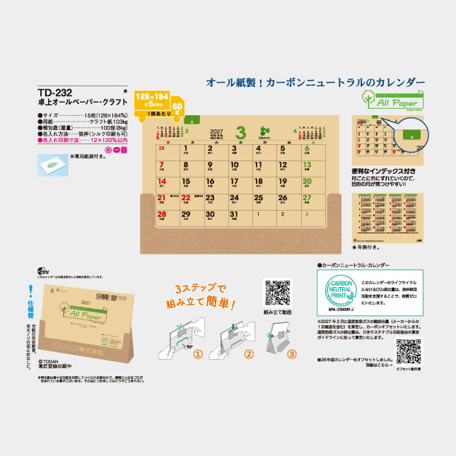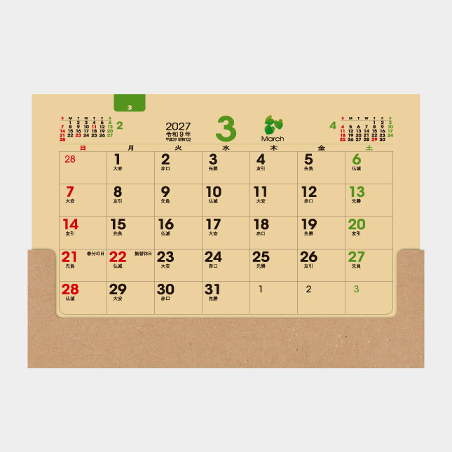 地球環境に配慮したオールペーパー仕様の卓上カレンダー。