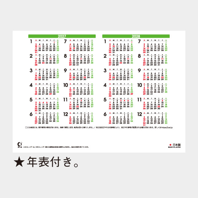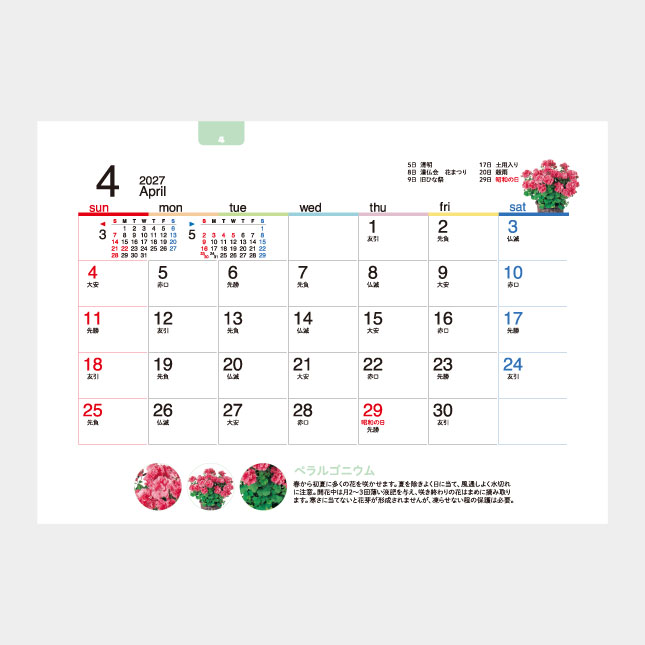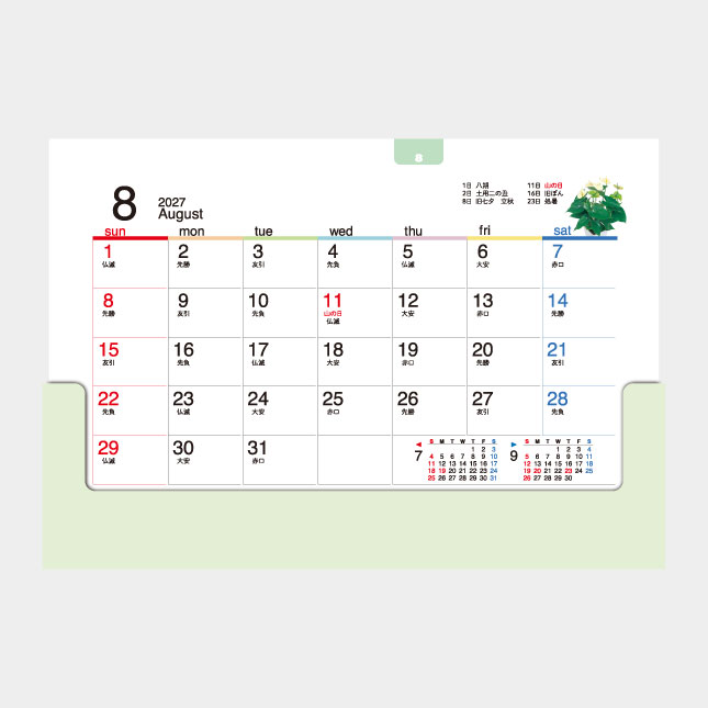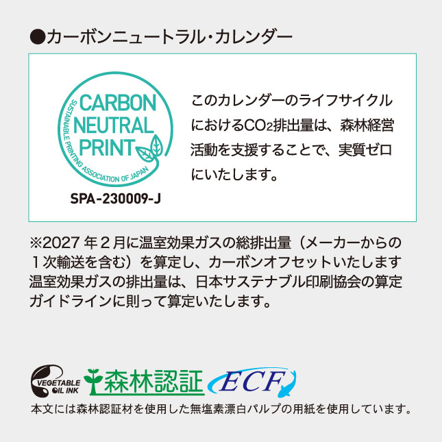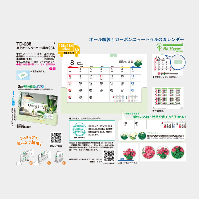 地球環境に配慮したオールペーパー仕様の卓上カレンダー。