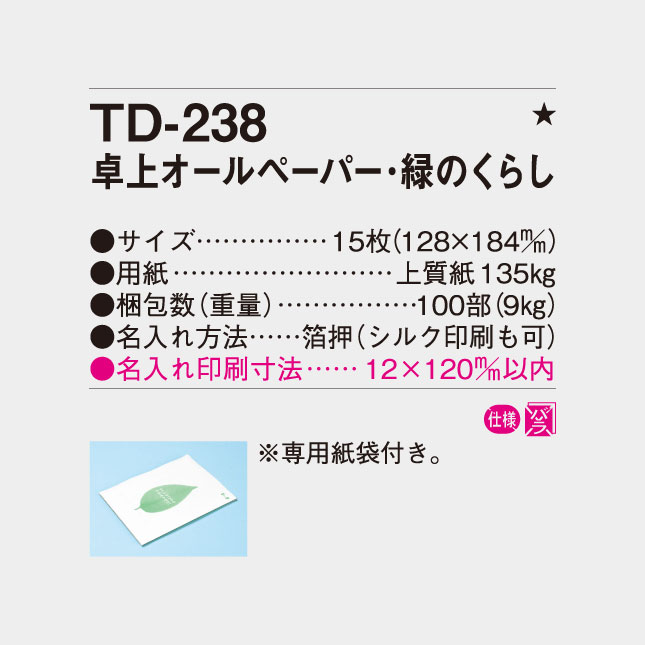 卓上 オールペーパー・緑のくらし TD-238 の特徴
