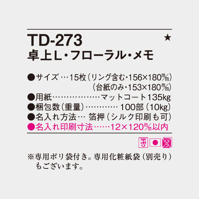 卓上 L・フローラル・メモ TD-273 の特徴