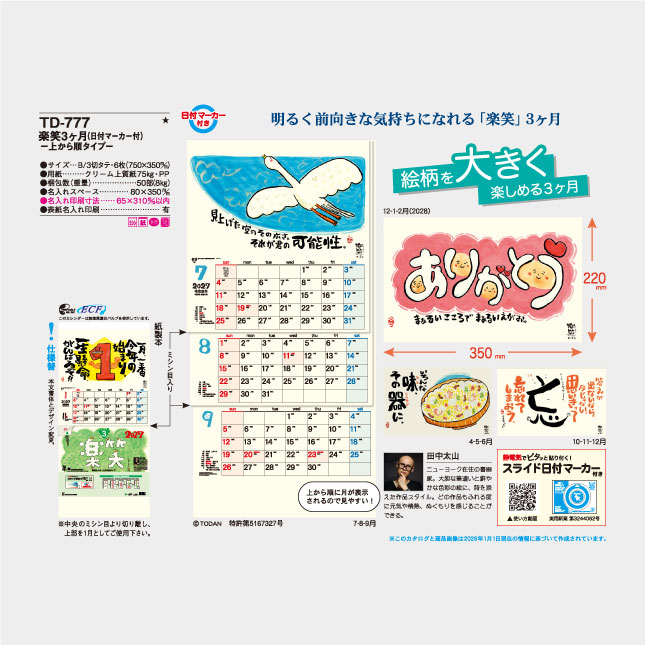 ホーム > 商品 > 壁掛けカレンダーから探す > イラスト・絵入り文字 > TD-777 楽笑3ヶ月ー上から順タイプー