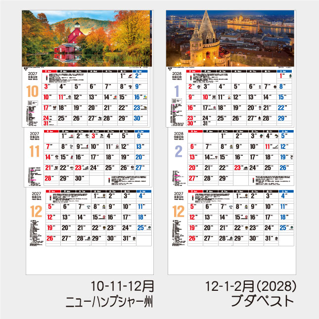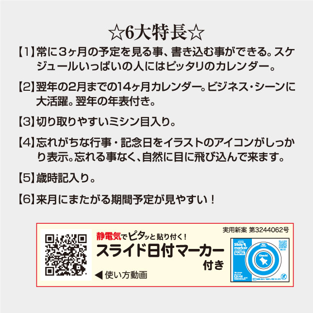 【2】翌年2月までの14ヶ月カレンダー。翌年2月までのスケジュールも書き込め、ビジネス・シーンに大活躍。翌年の年表付き。